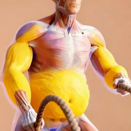 You swing the weighted handles in alternating or simultaneous waves — the inertia creates resistance similar to traditional ropes.